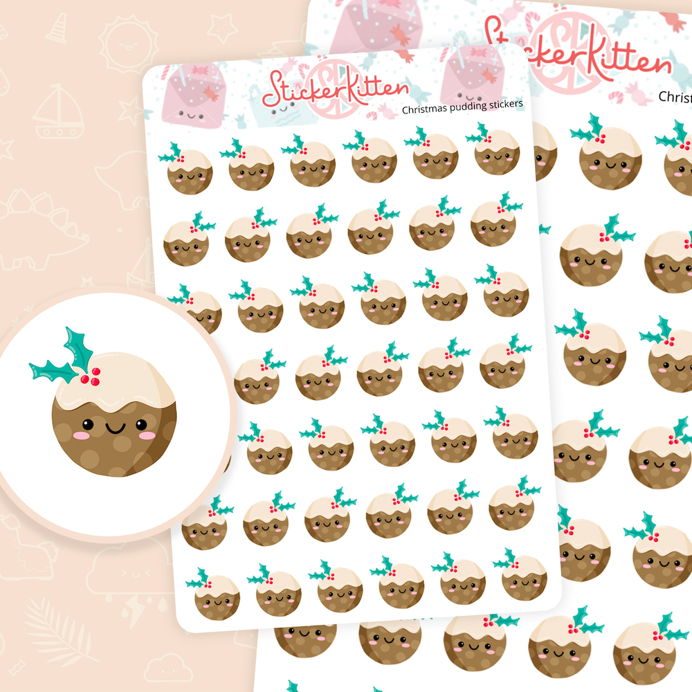 – Each Christmas pudding sticker is 1.6cm wide by 1.7cm tall.