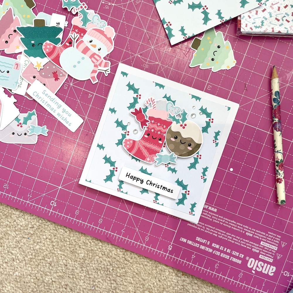 This cute craft bundle is the perfect Christmas craft kit for making pastel Christmas cards, scrapbook layouts and journal pages – great for December Daily journalling too.