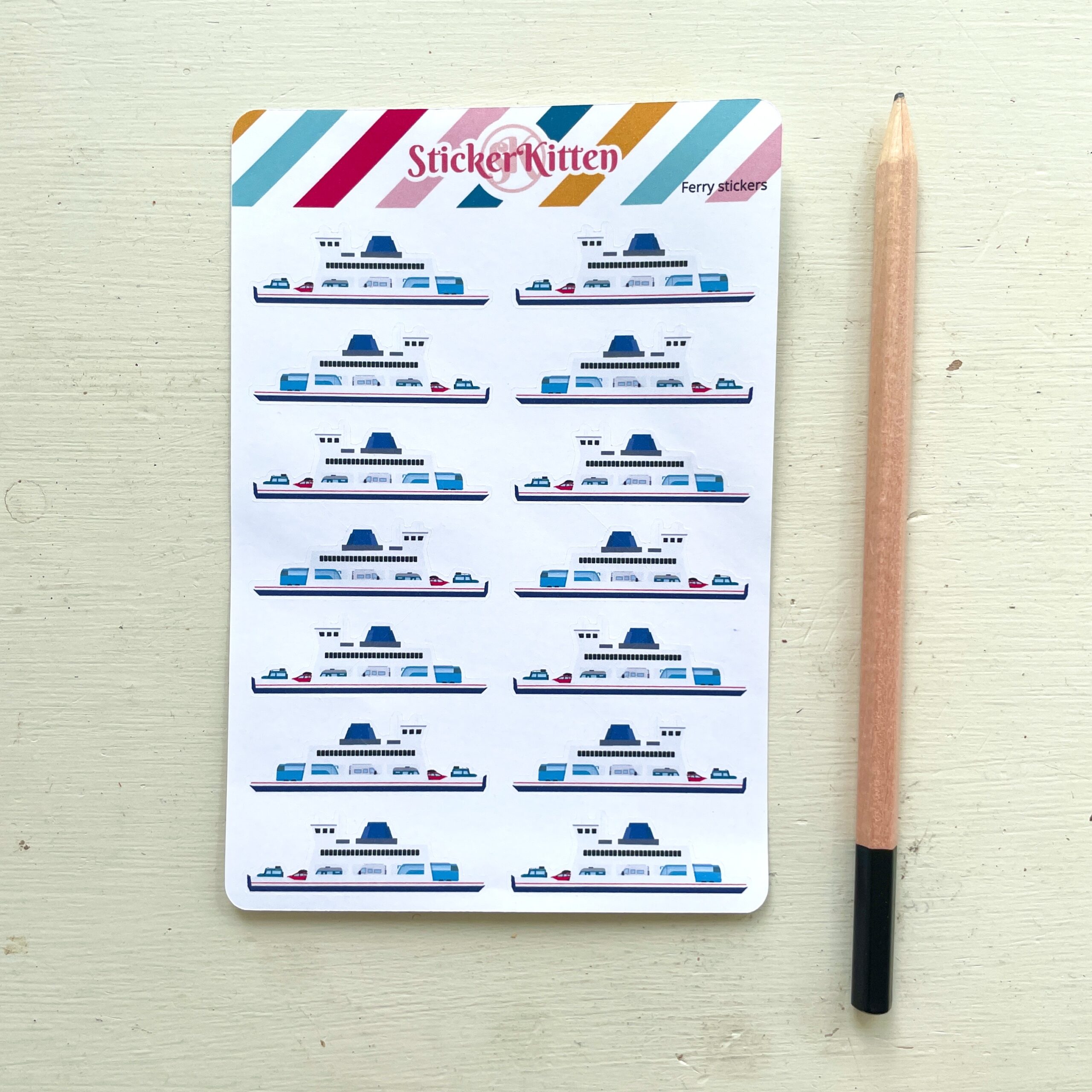 One sheet of ferry boat stickers. Matt paper. Kiss cut and ready to use.