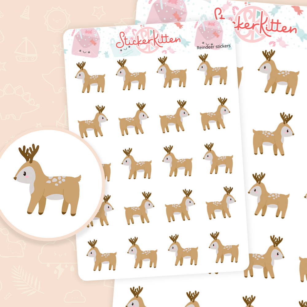 One sheet of cute reindeer stickers. Matt paper. Kiss cut and ready to use.